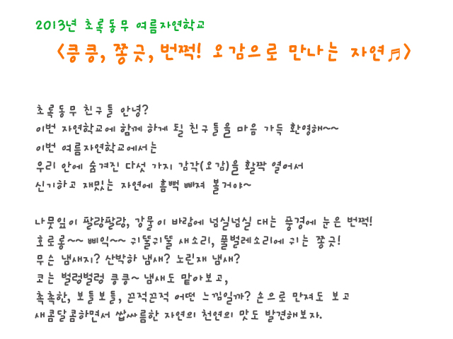 ♣ 여름자연학교♬ – 첫째날 (7/27 토요일)
