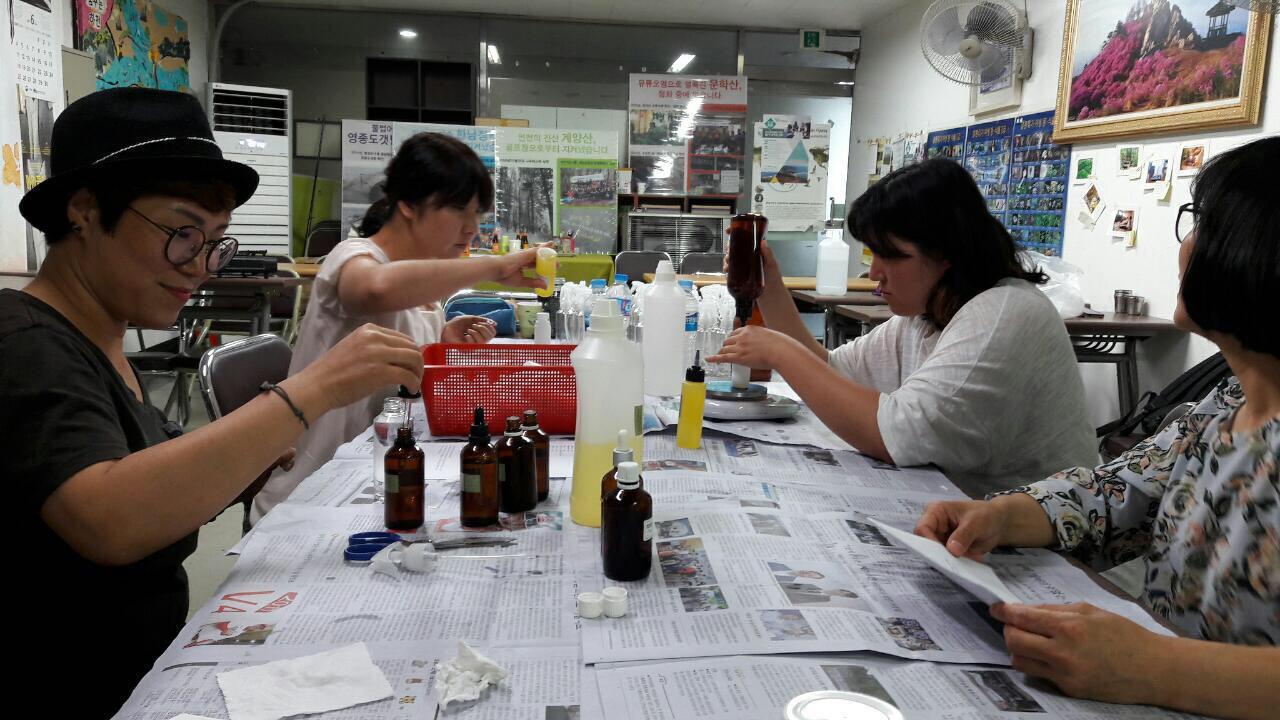 회원들과 천연모기퇴치제와 버물리를 만드는 시간을 가졌습니다. 오전/오후로 나누어 진행을 했습니다.
