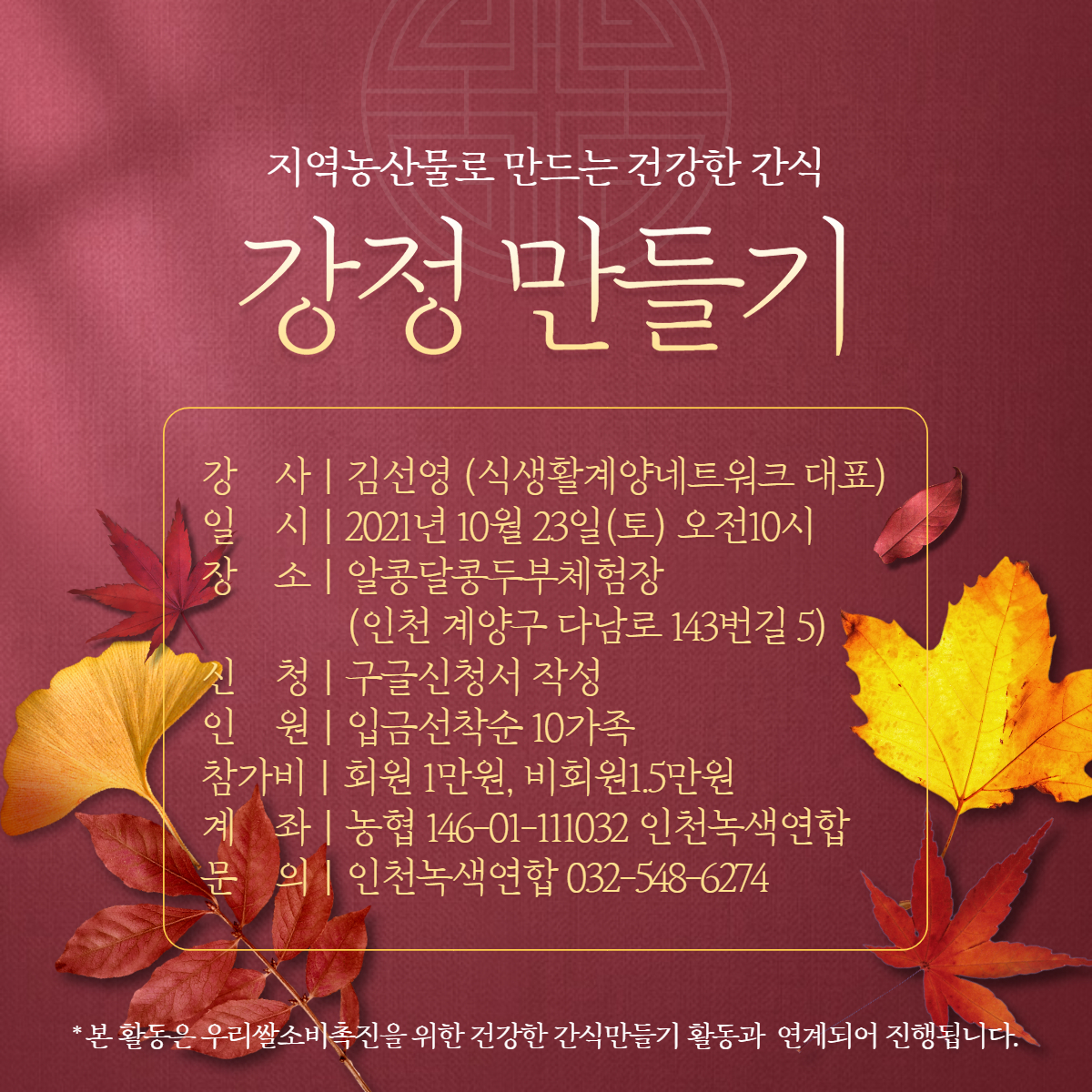 ○ 장소 : 알콩달콩두부체험장(계양구 다남로 143번길 5)