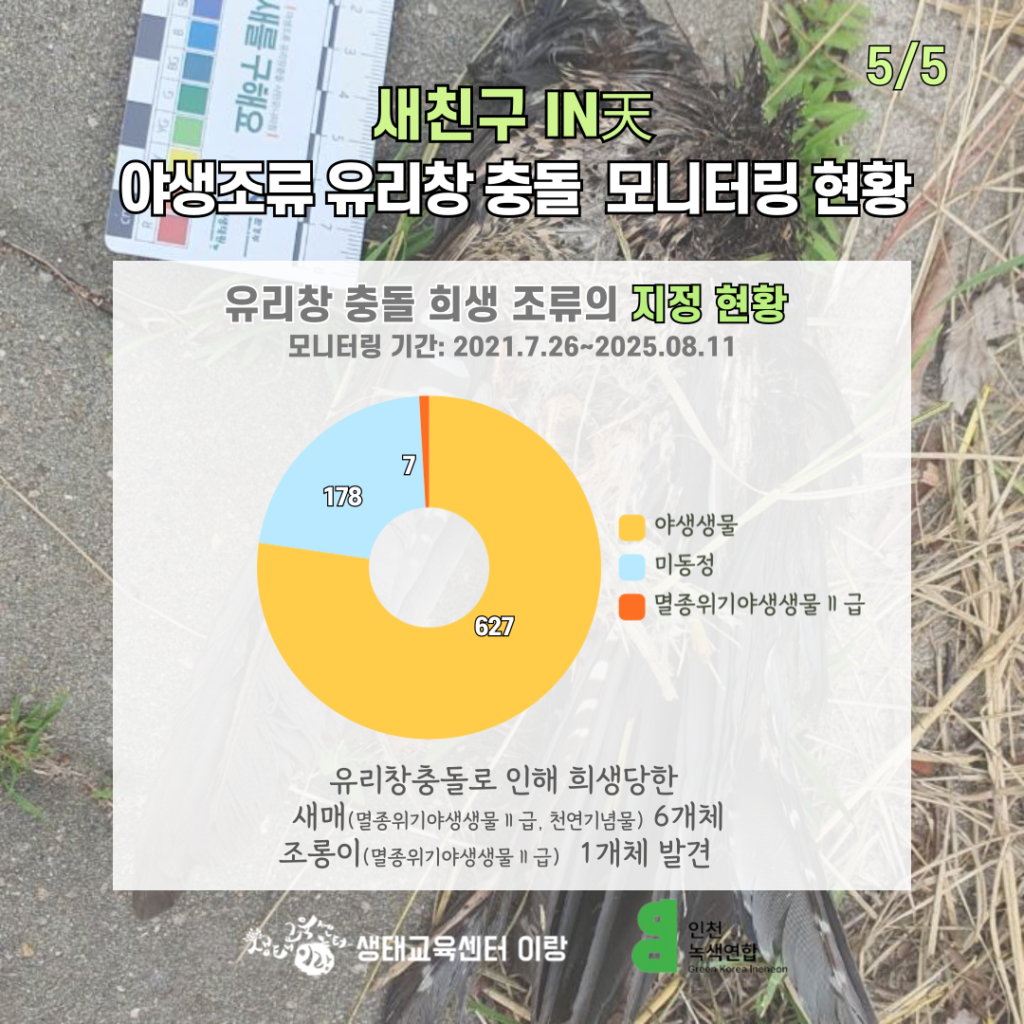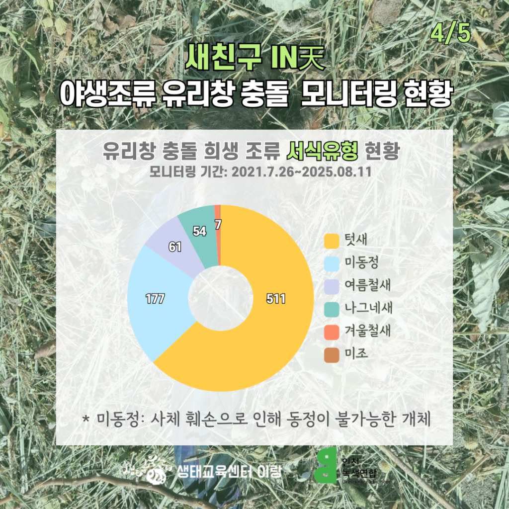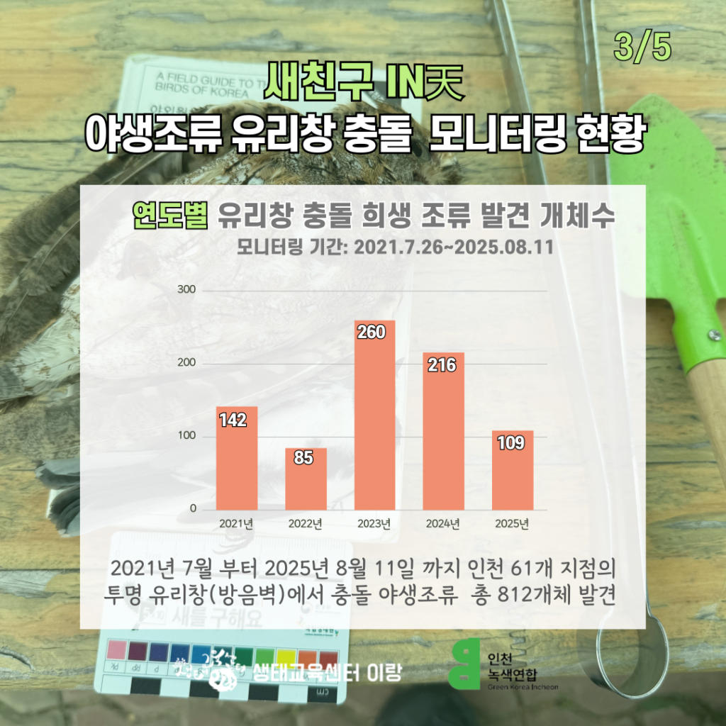 야생조류 투명 유리창(방음벽) 충돌 모니터링을 진행하고 있습니다.
