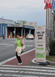 택시에서 내리자 반가운 두 얼굴이 연두색 조끼를 입고 나를 행사장소로 안내해 주었습니다.