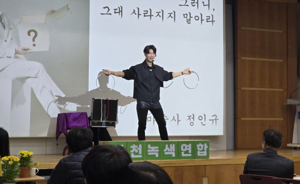 행사의 마지막 순서로는 ‘마술사 정인규의 그린매지컬’이라는 제목으로 마술공연이 준비되어 있었습니다.