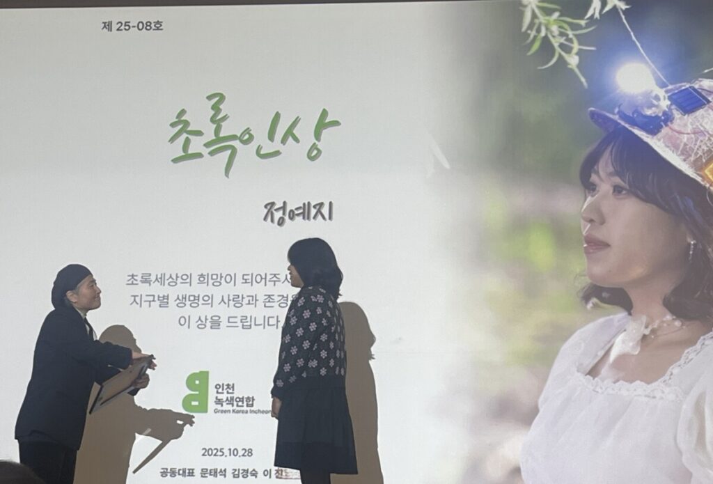 인천녹색연합 활동에 협력하고 지원해준 것에 감사를 드리는 의미가 담긴 올해의 초록인상은