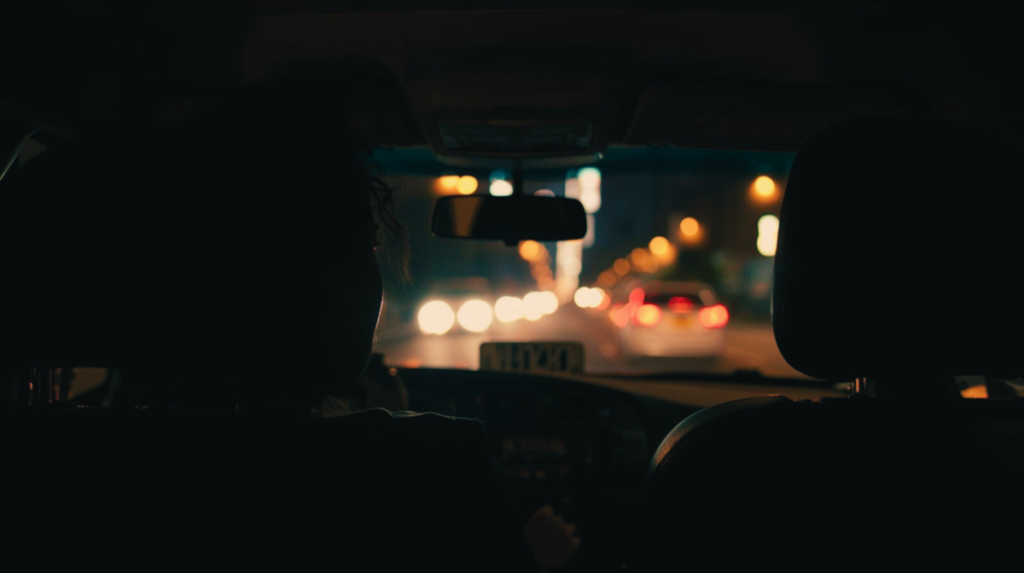 운전석 쪽 창밖으로 고개를 무겁게 그리며