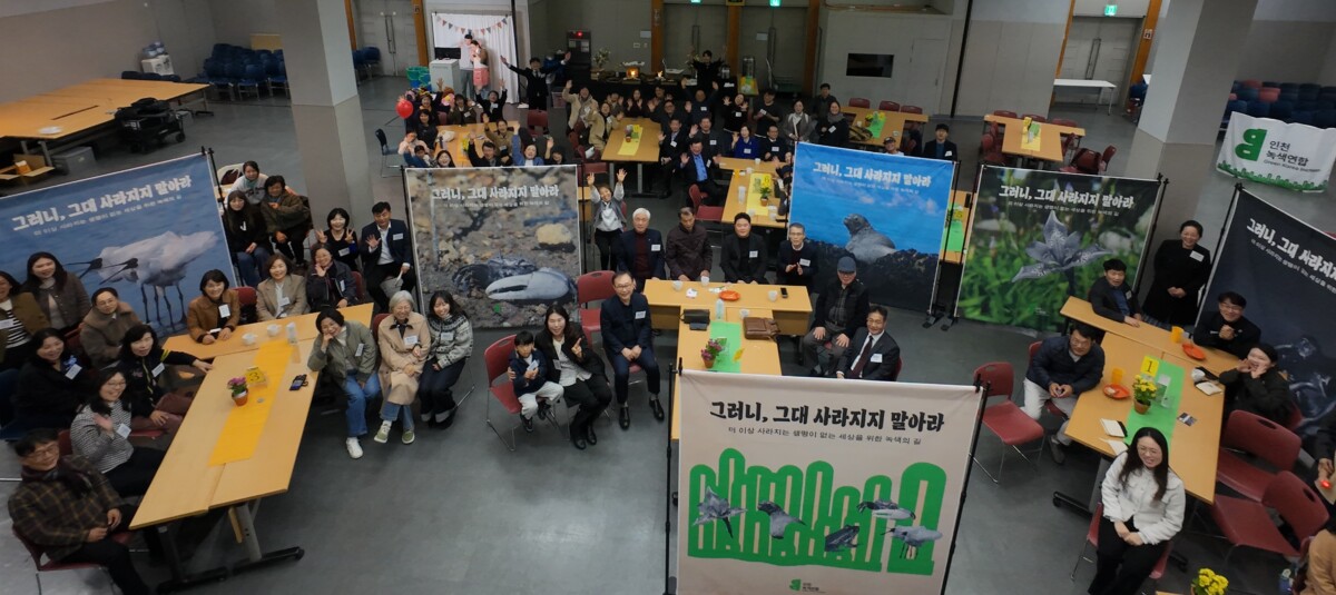 인천녹색연합은 창립 32주년을 맞아 어제(10월 28일) 한국지엠 부평공장 홍보관에서 ‘그러니, 그대 사라지지 말아라’라는 제목으로 창립기념행사를 열었다. 기후위기와 난개발 속에서 사라지는 생명들이 없도록 활동해 온 인천녹색연합 활동을 소개하고, 앞으로의 활동을 다짐하는 자리로 사전행사와 본행사로 나누어 진행했다. 사전행사는 인천시 깃대종에게 보내는 메시지 작성, 포토월로 구성했으며, 본행사는 후원 감사 인사, 정인규 마술사와 함께 하는 마술쇼로 이루어졌다.
