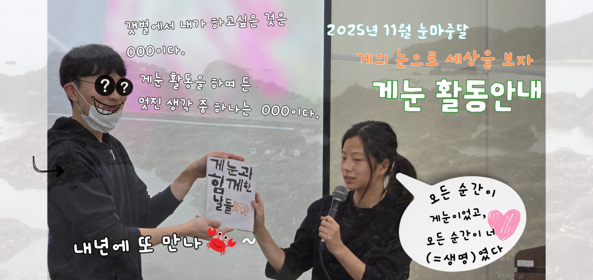 1) 활동내용 : 올 한 해 게눈 활동을 되돌아보고 내년 활동에 대해 이야기나눕니다.