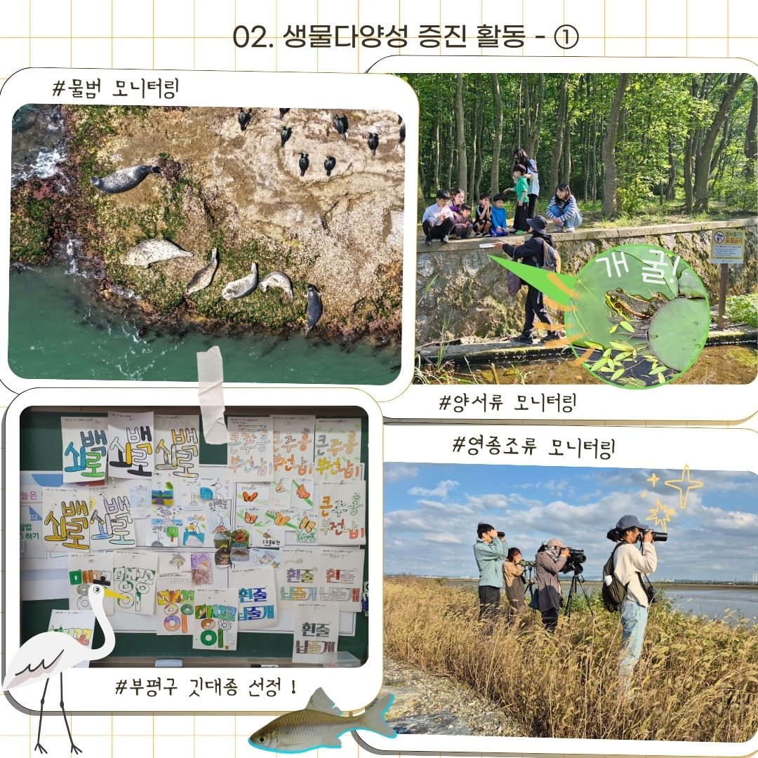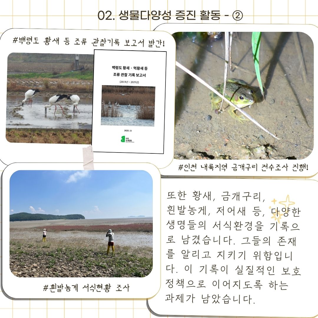 또한 황새, 금개구리, 흰발농게, 저어새, 점박이물범 등, 다양한 생명들의 서식환경을 기록으로 남겼습니다.
