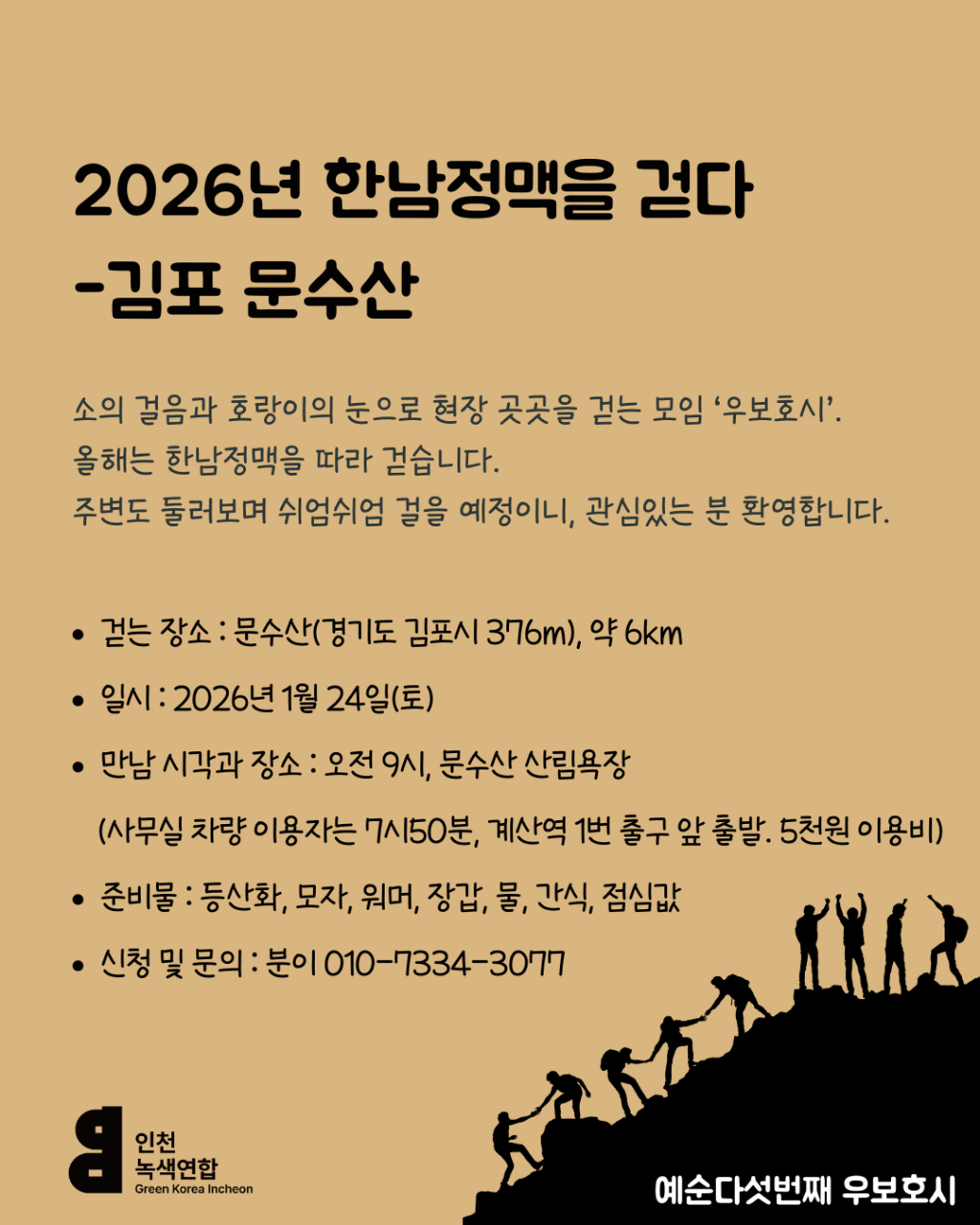 소의 걸음과 호랑이의 눈으로 현장 곳곳을 걷는 모임인 ‘우보호시’는 2026년 한남정맥을 따라 걷습니다.