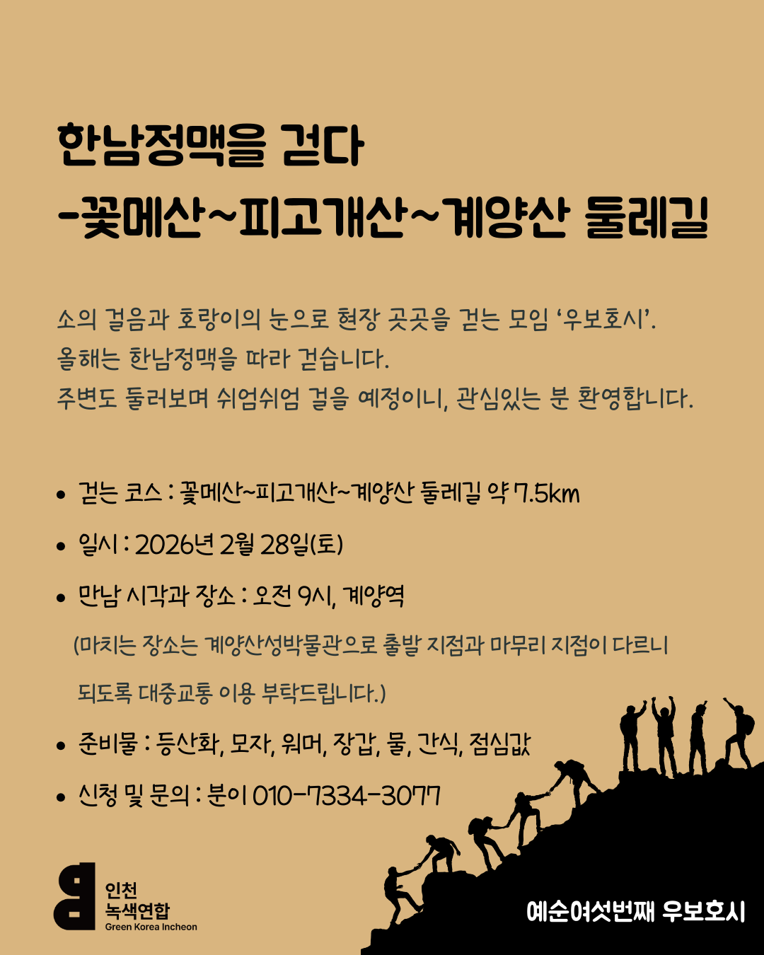 - 만남 시각과 장소 : 오전 9시, 계양역 (마치는 장소는 계양산성박물관으로 출발 지점과 마무리 지점이 다르니 되도록 대중교통 이용 부탁드립니다.)