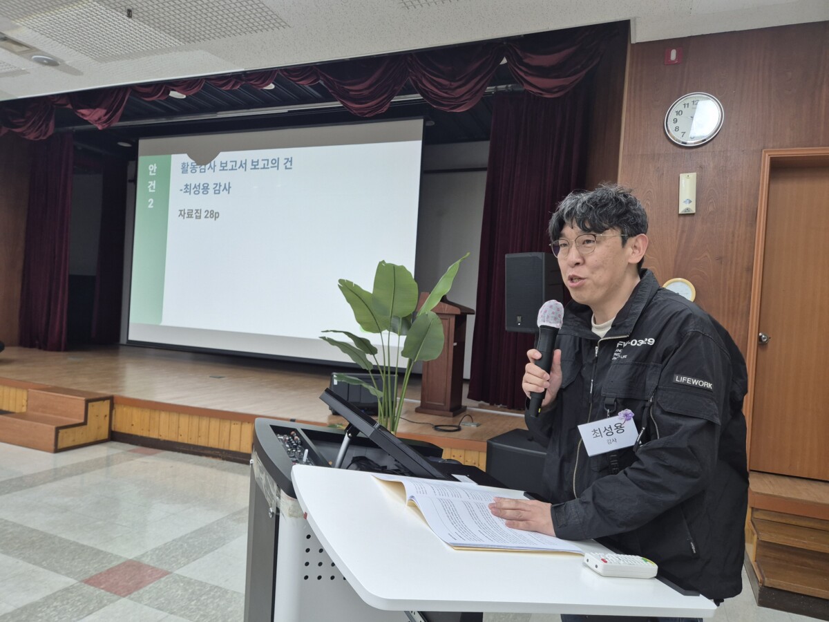 임찬재 회계감사의 재정감사 보고와 함께 최성용 활동감사님 주요 활동의 흐름과 성과를 점검하고, 향후 활동의 방향성과 운영상의 개선점을 함께 모색하기 위해 작성하신 활동보서를 작성하고 발표해주셨습니다.