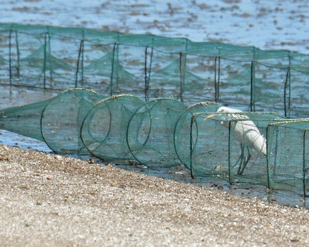 첨부2. 지네통발에 포획된 채 발견된 노랑부리백로(2025년 6월 26일, 용유갯벌)