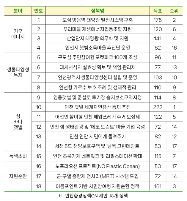 -시민이 제안하고 투표로 고른 인천 환경정책, 정당의 공약과 실행을 묻다-