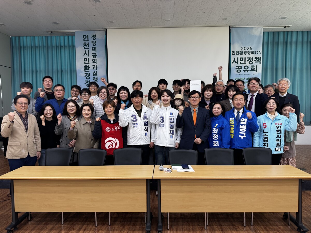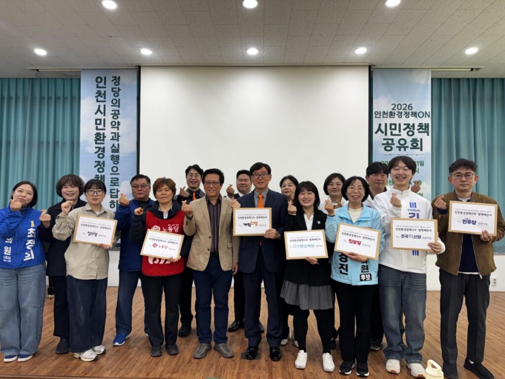 인천환경정책ON 추진위원회는 3월 31일 인천YWCA에서 「2026 인천환경정책ON 시민정책 공유회」를 열고, 시민이 직접 제안하고 시민투표로 우선순위를 정한 인천의 환경정책을 지방선거에 참여하는 정당에 공식 제안했다. 이날 행사에는 시민, 정당 관계자 등 60여 명이 참여했으며, 더불어민주당, 국민의힘, 조국혁신당, 진보당, 개혁신당, 기본소득당, 노동당, 정의당의 정당 관계자와 예비후보가 함께했다.