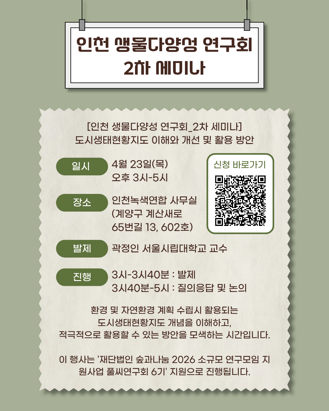 ※ 이 행사는 ‘재단법인 숲과나눔 2026 소규모 연구모임 지원사업 풀씨연구회 6기’ 지원으로 진행됩니다.